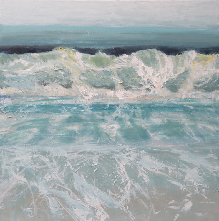 Transparante golf, in turquoise, acryl op linnen 80x80