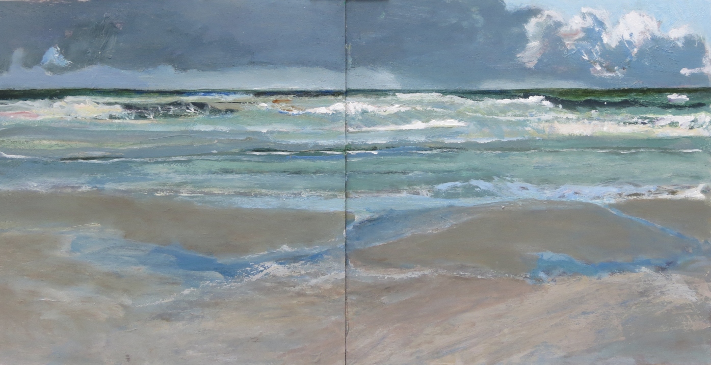 Zeekant, tweeluik, acryl op paneel 2x60x60